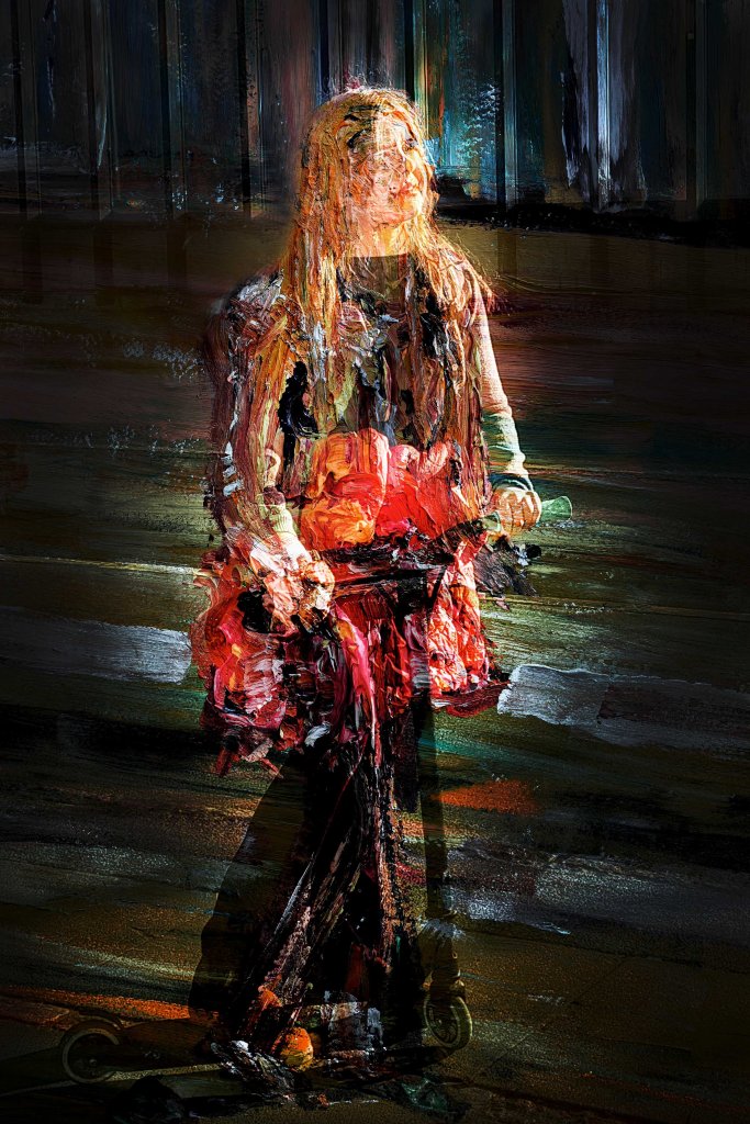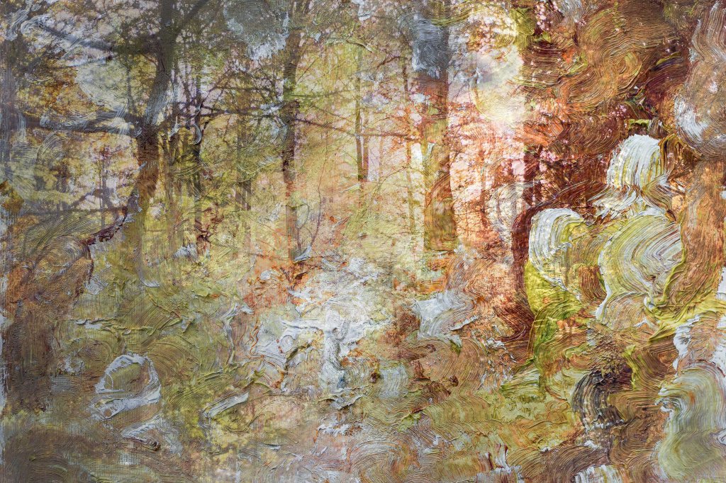 In my photographic works, I reconsider my journey. I seek to reopen my sensation, make it present, ask about the nature of photography as well as painting, about the subjective, the sensual, about presence, – about how a photograph, processed using oil paint, digital editing and printing, can come into oscillation? How a potential presence can be liberated, bodily, sensual, intellectual, through poetry and aesthetics, text and image. The personal attempted unfolded, the melancholic oscillating with the euphoric.